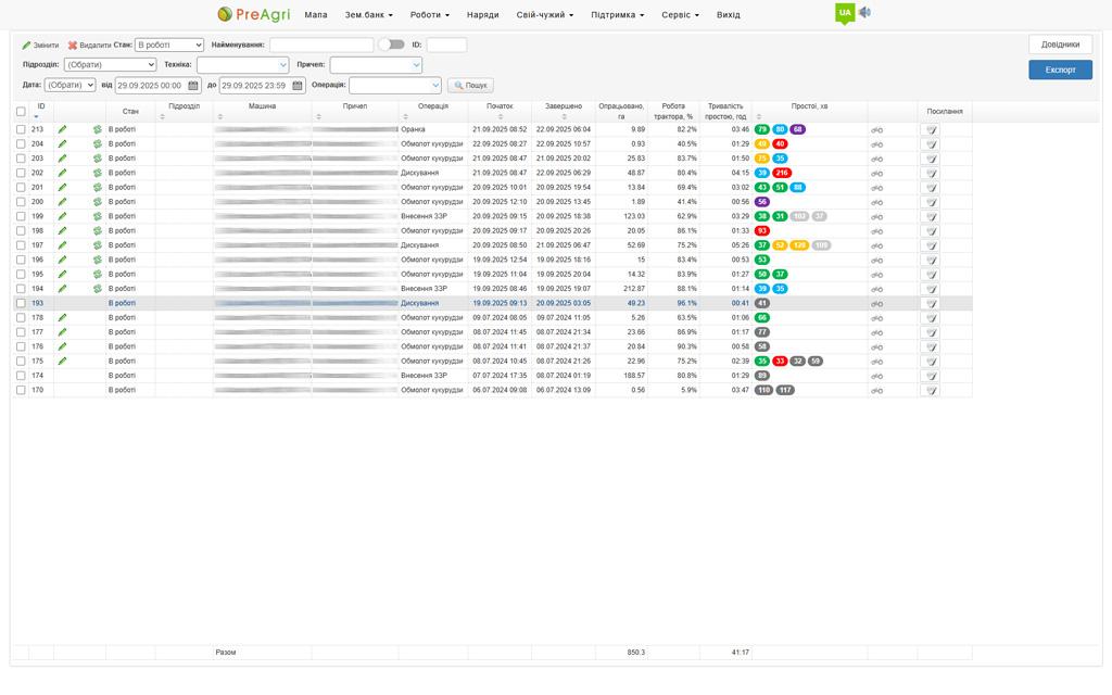Reports with the dynamics of plant growing, precipitation, soil moisture and other indicators